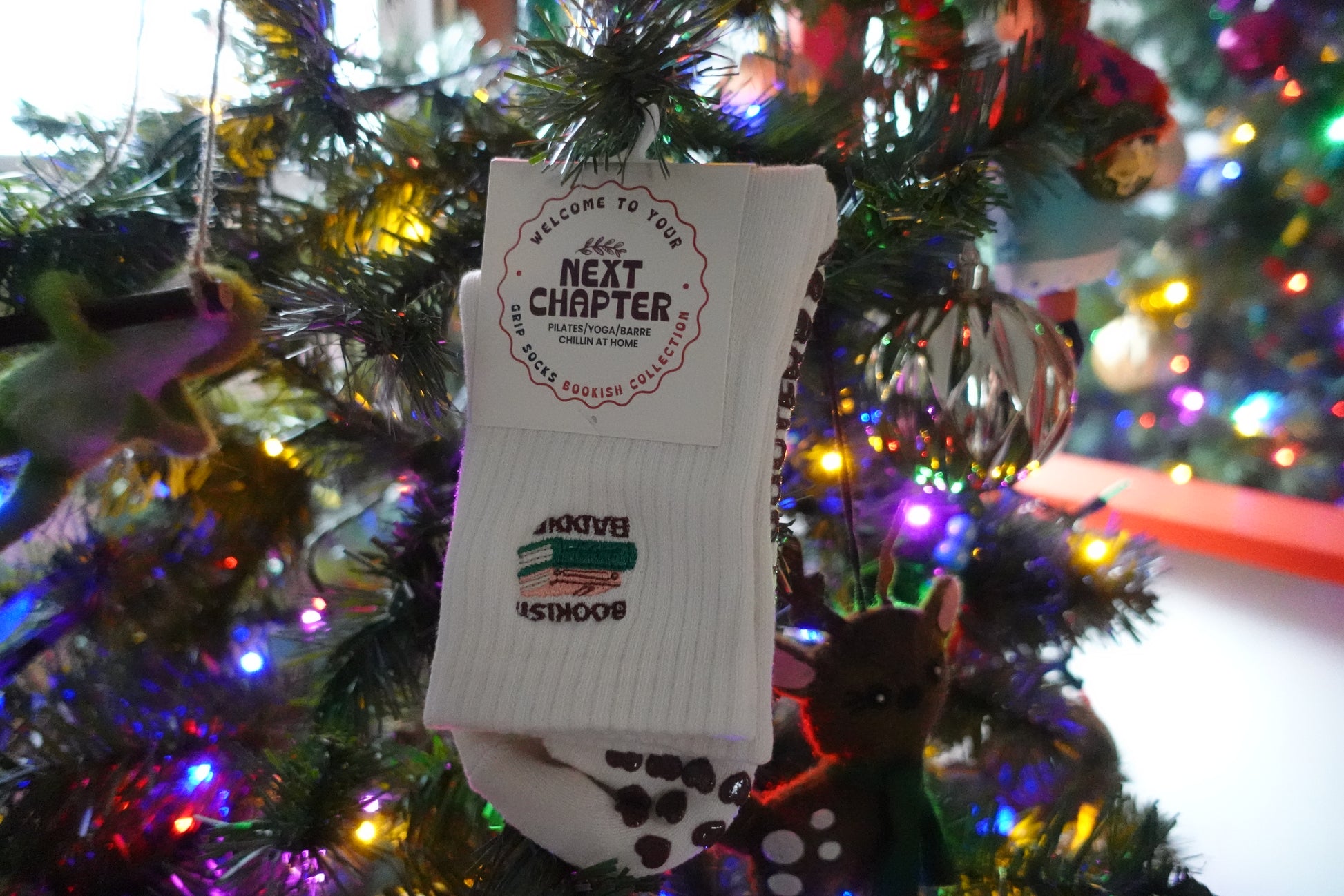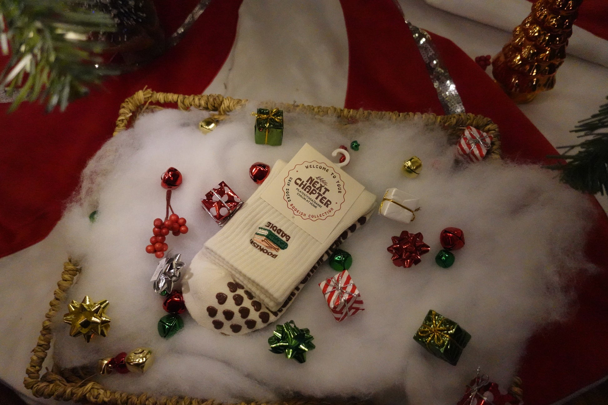 Step into comfort with these cozy socks designed for readers and wellness enthusiasts alike. "Bookish Baddie" Embroidered and crafted from a breathable cotton-blend fabric with just enough spandex for gentle arch-hugging compression, they're perfect whether you're curling up with your latest page-turner or flowing through yoga class. The extra-cushion support keeps your feet happy during Pilates, barre, or lazy afternoons at home. Easy care: machine wash inside out in cold water, then air dry. Because the best stories deserve the coziest feet.