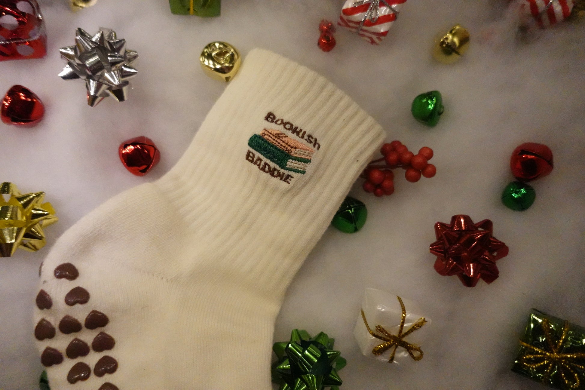 Bookish Baddie Embroidered Grip Socks