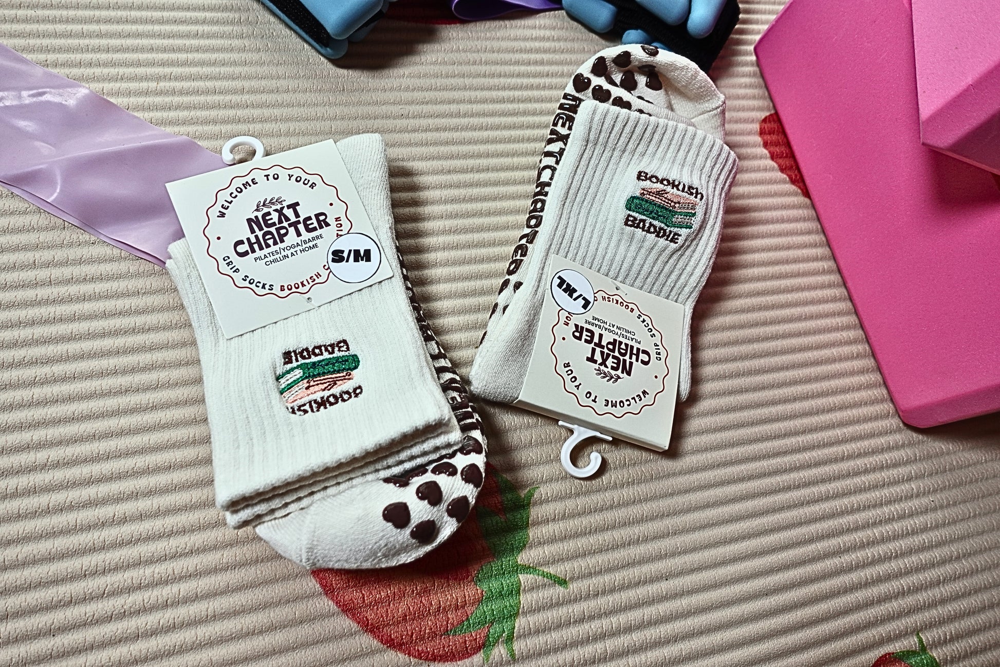 Available in S/M and L/XL, our embroidered "Bookish Baddie", grip socks are the perfect cozy addition to your workouts, lounging at home, or post-everything shower!